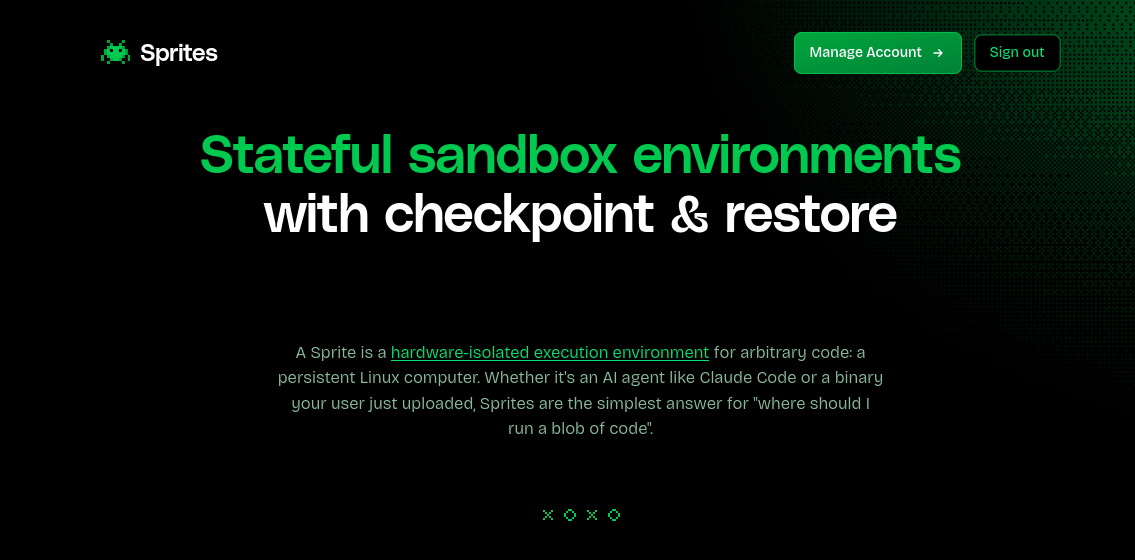 the idea with sprites is that they spin up a souped-up VPS (the implementation details of which do not really matter) and you ssh to it and can run your harness inside.